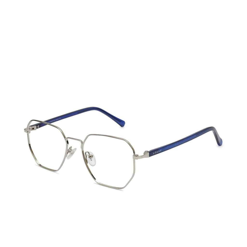 Airman 39-Eyenic Silver Blue Hexagon Unisex Eyeglasses C4